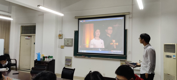 随后,各学生党员一同对《时代楷模》进行了观看学习。影片讲述了黄大年等人的光荣事迹,通过展示他们是如何在自己的岗位上不忘初心,践行自己的使命,突显了共产党人的为民情怀、献身精神、执着精神和坚定信念。观影结束后,组织成员对自己的所感所悟进行了积极讨论,促使党员们对初心和使命有了更深入的理解。习近平总书记指出,今天的年轻人是实现第二个百年奋斗目标的骨干和栋梁,为此,我们应当牢记新时代青年科研工作者的初心和使命,杜绝社会现象上学术不端等不良现象。