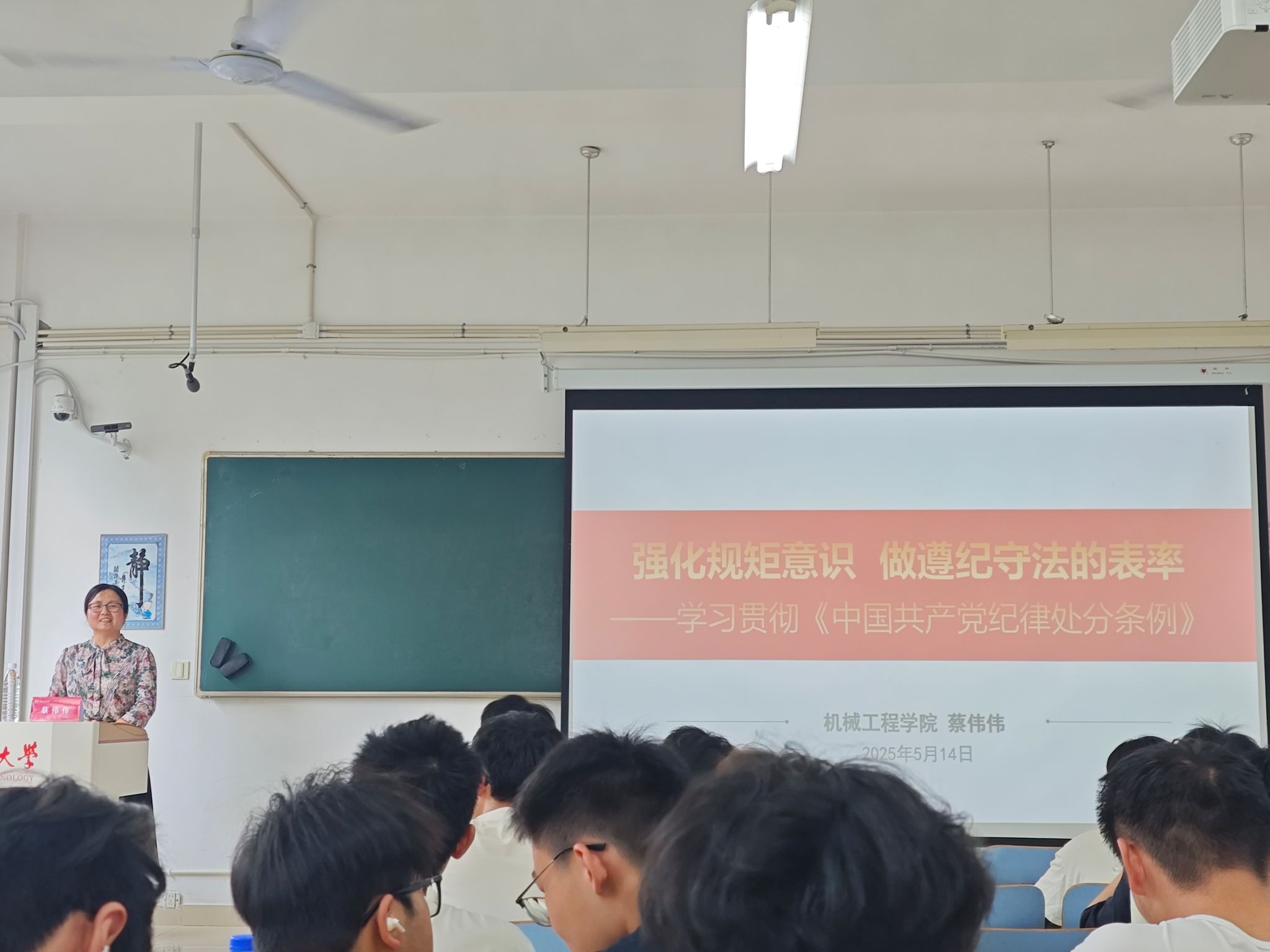 蔡伟伟围绕“强化规矩意识,做遵纪守法的表率”主题开展党纪教育。通过对比党纪与法律约束范畴,结合高校学生党员违纪等警示案例,系统解读《中国共产党纪律处分条例》修订要义及六大纪律核心要求。特别针对“发表不当言论”“网络行为失范”等易发问题开展辨析,强调党纪是党的生命线,是保持党的先进性和纯洁性的重要保障,入党积极分子须以更高标准严守政治纪律,将规矩意识转化为行动自觉。