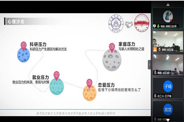研究生会与南京航空航天大学能源与动力学院研究生会联合开展了“‘新’心相印‘疫’路同行”线上心理沙龙活动。