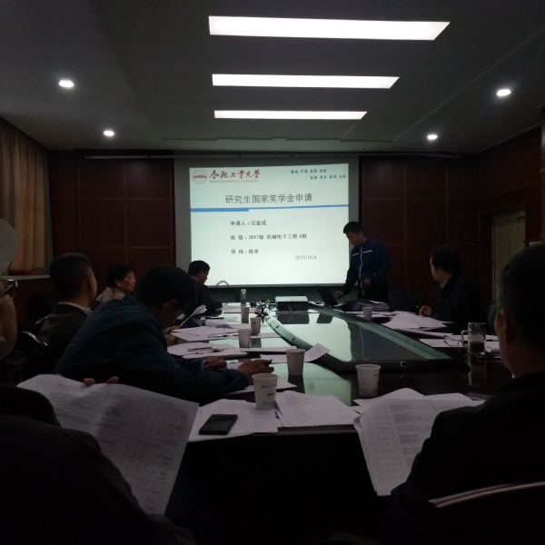 10月8日下午2点半,我院2019年研究生国家奖学金答辩会在格物楼308会议室举行,学院党政领导、导师代表、行政管理人员代表、研究生代表共同组成国家奖学金评审委员会,结合个人申报材料与现场个人陈述进行评审。