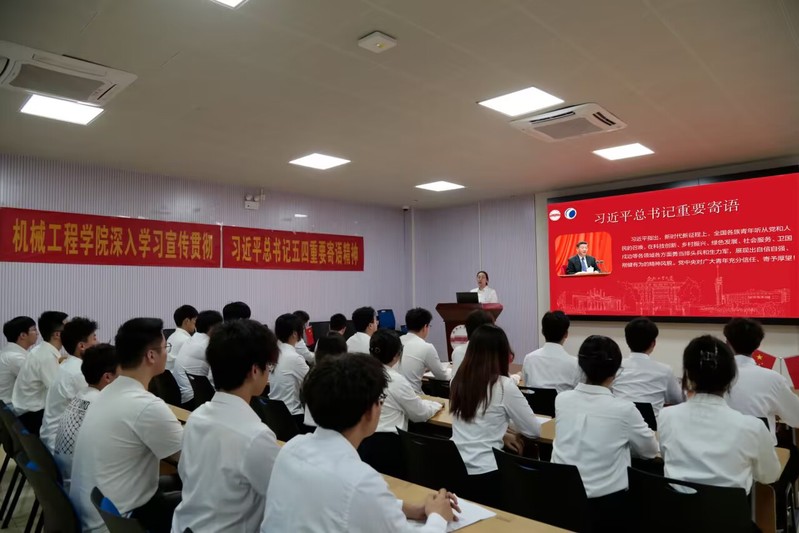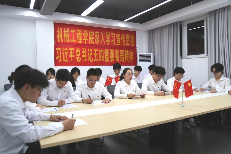 会议中,学院团委书记尹佳婧老师领学习近平总书记对新时代青年重要寄语,并分享学习体会。她表示,习近平总书记对青年的殷殷嘱托,让人倍感温暖、倍受鼓舞、倍觉责任在肩。机械学子要牢记嘱托,着力打造青春机械、奋斗机械、创新机械、责任机械,为工业强国汇聚机械“青”动能。