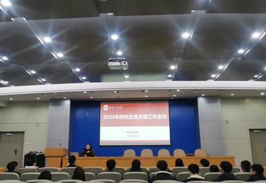 在格物楼214报告厅召开2024年春季学期研究生党支部工作会议,学院研究生辅导员范选娇及全体研究生党支部书记、副书记参加会议。