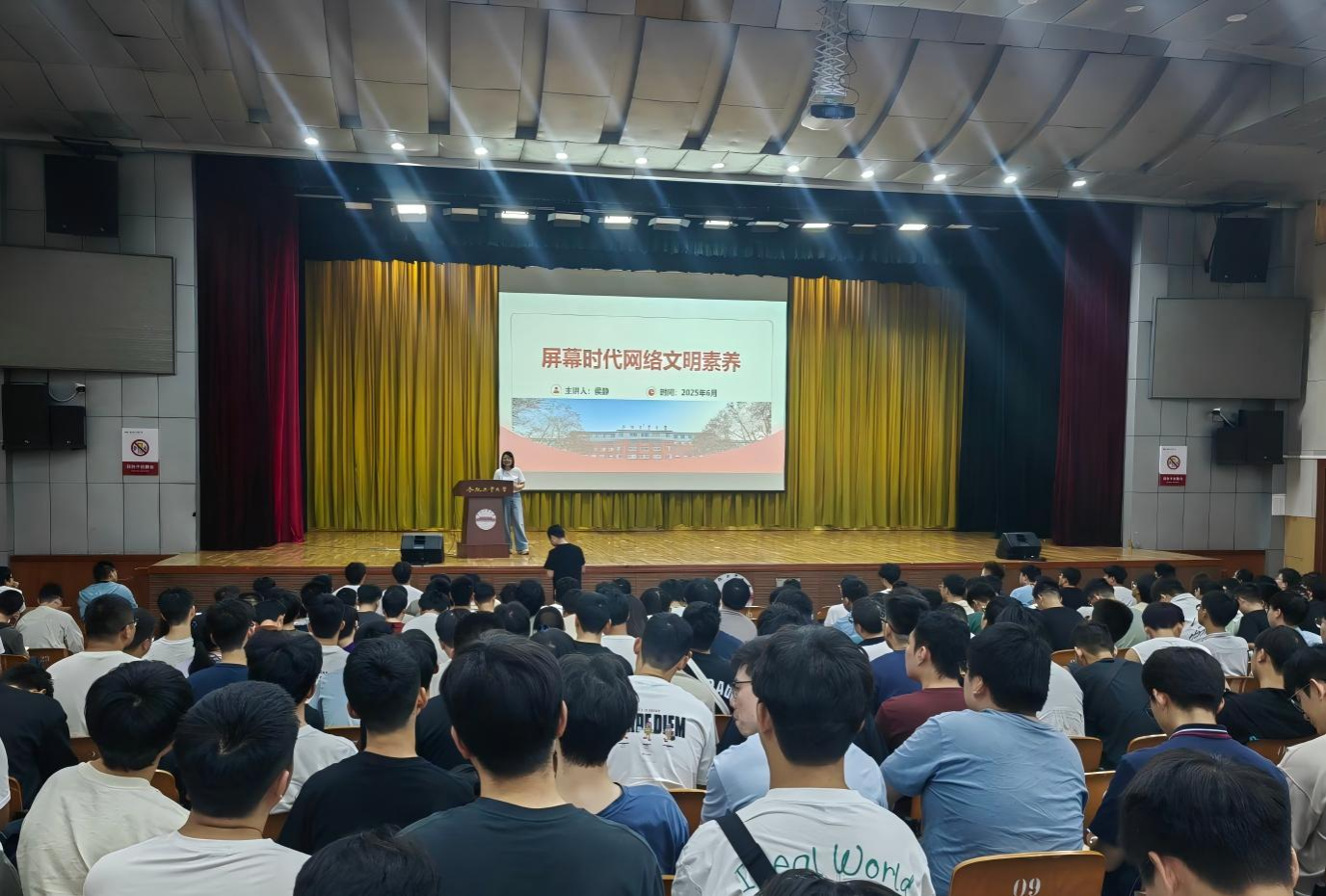 在斛兵礼堂组织召开“共筑网络安全防线”研究生大会,大会围绕“网络文明素养提升”与“防范电信诈骗”两大主题展开,学院750余名研究生参会。