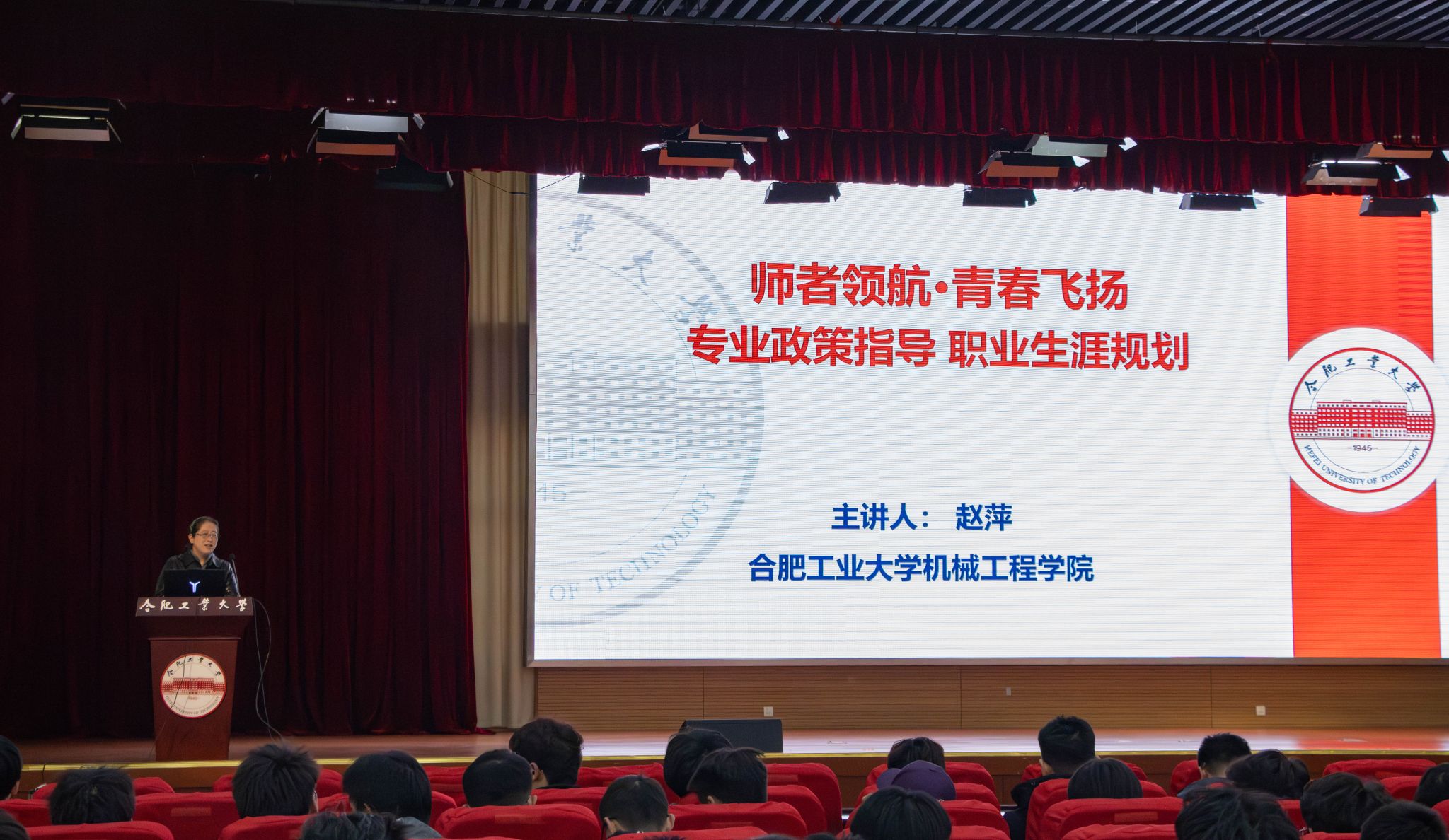 赵萍副院长聚焦专业政策指导与职业生涯规划,系统介绍学院学科发展历程与人才培养优势。她提到,学院始终立足机械工程这一学校重点传统优势学科的深厚基础,以“为国家装备制造业培养骨干与领军人才”为核心使命,持续为行业输送优质人才。随后,她进一步详细解读机械设计制造及其自动化、工业工程、飞行器制造工程、智能制造工程四个专业的培养方案与课程体系,并结合专业学习特点,鼓励同学们主动关注学科前沿动态、尽早参与科研实践,为未来深造与职业发展筑牢基础。此外,赵萍副院长还介绍了学院各科研团队的主要研究方向,为学生参与科技创新活动提供多元路径,最后寄语同学们在专业学习中夯实数理根基、积极培育工程思维。