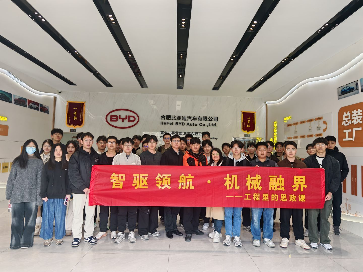 活动尾声,师生在企业展厅合影留念,本次实践学习活动圆满落幕。此次实践走访不仅拓宽了学员的专业视野,更是一堂扎根产业一线、兼具实践内涵的思政教育课。学院将持续引导学生在学用结合中锤炼专业本领、坚定理想信念,以实际行动为制造强国建设贡献合工大学子的青春力量。