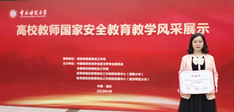 4月6日至8日,由教育部思想政治工作司指导,中国高等教育学会保卫学专业委员会、全国高校思想政治工作网、教育部高校思想政治工作创新发展中心联合主办的“高校教师国家安全教育教学风采展示活动”在重庆师范大学举行。我校参赛代表、4虎