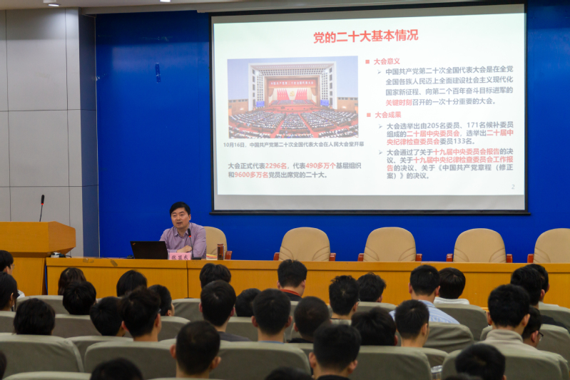 开展党的二十大精神宣讲报告会,学院党委书记张显东担任主讲,学生党支部书记及支部委员、研究生班级骨干、研究生会骨干参会。