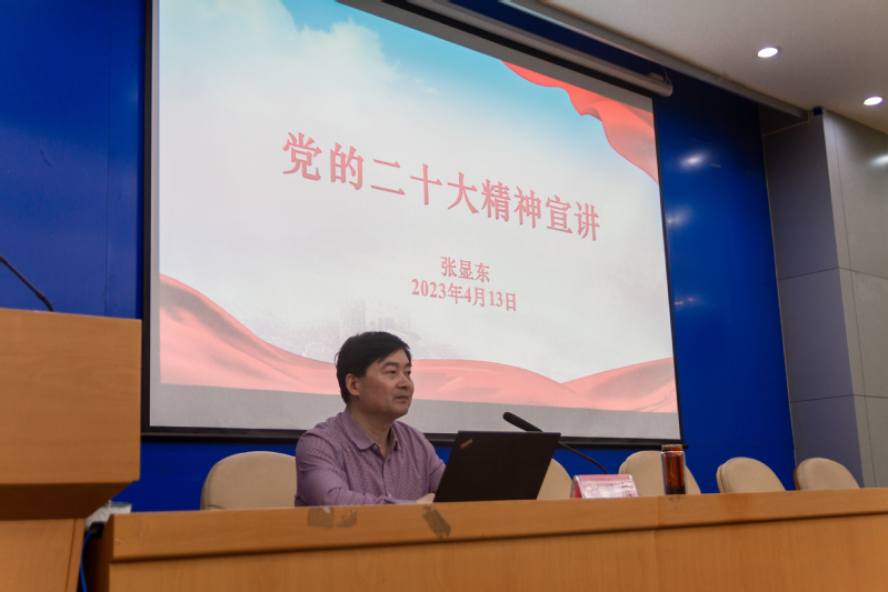 张显东首先概括介绍了党的二十大报告框架和体系,理清二十大报告的思路,然后从深刻领会党的二十大重大意义、“两个确立”的决定性意义、过去五年的重大成就和新时代十年的伟大变革、马克思主义中国化的精神实质、以中国式现代化推进中华民族伟大复兴的使命任务、党和国家事业的新部署新要求七个方面,结合学院工作实际,对党的二十大精神进行全面宣讲和深入解读。