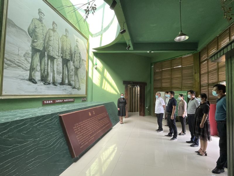 9月30日上午,陈科、訾斌带队实地参观渡江战役总前委孙家圩子旧址纪念馆。渡江战役总前委孙家圩子旧址位于安徽省蚌埠市蚌山区燕山乡孙家圩子村,是安徽省级文物保护单位。旧址区主要由邓小平旧居、陈毅旧居、张震旧居、大食堂及会议室组成。