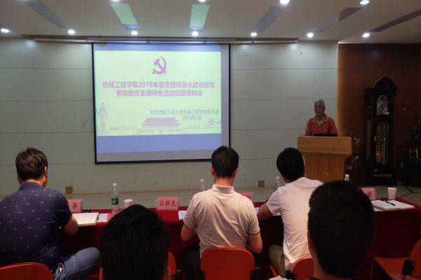 基层党组织标准化建设管理信息平台操作说明及填写范例》,组织各学生党支部书记进行集中培训,就检查验收要求、材料整理等相关问题进行统一部署,再次强调党建工作要落到实处,做到有迹可循、条理清晰、统一规范。答辩过程中,各学生党支部对照《基层党支部标准化建设达标自查表》及安徽省基层党组织标准化建设信息管理平台内容,逐条逐点就党组织设置、班子队伍建设、党员教育管理、党内组织生活、发挥作用途径、工作运行机制和基本工作保障等方面展示党支部的各项工作及特色活动,对其中的不足进行分析并提出整改意见。