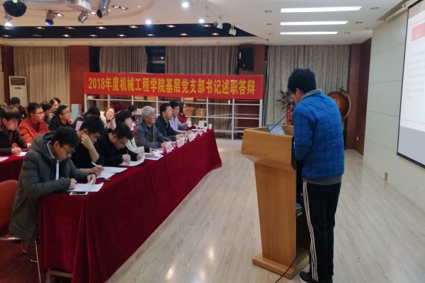 为深入贯彻落实习近平新时代中国特色社会主义思想和党的十九大精神情况、全国高校思想政治工作会议、全国组织工作会议、全国教育大会精神等落实情况,继续推进“两学一做”教育制度化常态化,我院于12月27日在格物楼316举行2018年度基层党支部书记述职答辩评议会,参加此次评议的有学院党建组织员张怀良、学院党委书记韩江、党委秘书陈华、各年级辅导员和全体基层学生党支部书记,评议会由学院党委副书记郑召丽主持。