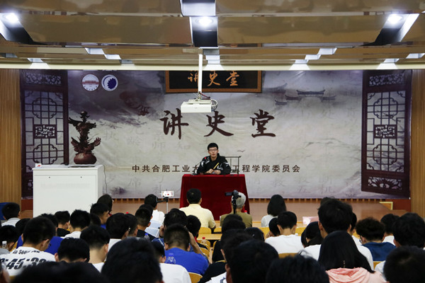 体验式理论学习的常态文化产品“讲史堂”在机械楼报告厅开讲,同学们先后上台讲党史、讲故事。校党建组织员张怀良,党委宣传部、党委学工部、校团委、院党委相关负责同志参加了此次开坛活动。