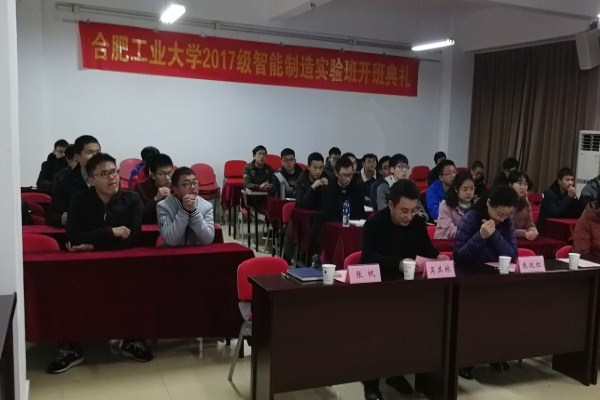 2017级机械设计制造及其自动化专业智能制造实验班开班典礼在翡翠湖校区综合楼302报告厅举行,校党委常委、副校长、合工大智能制造技术研究院院长、实验班班主任刘志峰、4虎