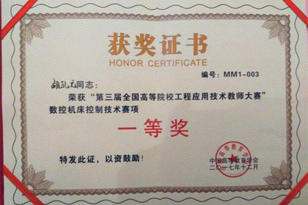 大赛为5大主题,16个赛项,报名参赛队伍共386支,经过初赛,最终215支参赛队伍进入决赛,196支参赛队参加决赛,分别来自清华大学等93所高校(其中“211工程”“985工程”高校17所,军事4所,一般本科72所)。大赛首先需要在网上提交设计方案,根据初审情况,决赛确定为15个赛项。我校同组竞技的有清华大学2组、哈尔滨工业大学2组等强手,历经方案审核、工程实践、故障诊断处理和现场答辩等环节。胡孔元老师成绩优秀,获得专家评委一致认可,获得数控机床控制技术组唯一一个一等奖,充分显示了我校工程基础厚、工作作风实的深厚底蕴,彰显了我校工程教育国内竞争力和教师的专业实践能力。