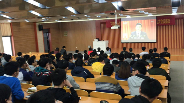 组织全院师生观看中国共产党第十九次全国代表大会的会议盛况,共安排了4个集中会场。