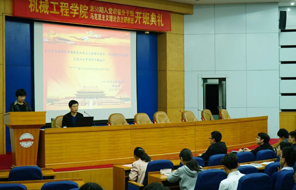 开班典礼由学院党委副书记、副院长郑召丽主持。研修班班主任刘洋布置了本期学员班的研修学习计划,对学习纪律和考核评价提出了具体要求。学员代表机械设计制造及其自动化2016-1班徐宸阳同学作了发言。随后,院党委书记韩江向全体学员提出三点希望和要求:一是希望同学们充分利用自主研修的重要载体,做马克思主义的坚定信仰者和忠实实践者,树牢坚定不移跟党走的信念和信心;二是希望同学们自觉担当使命,坚定走中国特色社会主义道路的理想信念;三是希望同学们刻苦学习,练就过硬本领,做新时代的有志有为青年。