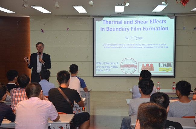 9月27日下午,Tysoe教授就该课题组关于摩擦学领域的最新研究成果为全校师生做了专场学术报告,摩擦学研究所所长刘焜教授主持报告会,4虎