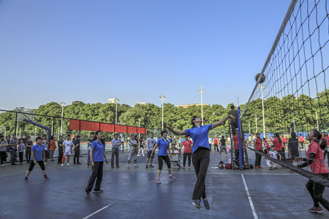 2017年女教职工排球比赛冠亚军争夺战如期举行。在学院党委书记韩江,副院长、工会主席左登发的带领下,学院师生齐聚比赛现场,巾帼英姿叱咤赛场,万众激昂呐喊阵阵,赛场气氛异常热烈。学院教工女排以3:0战胜对手,成功卫冕,创造了学校历史上绝无仅有的“六连冠”的傲人战绩。