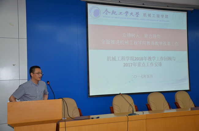 訾斌院长首先介绍了召开此次教学工作会议的目的和意义。他指出,学院始终坚持把教学工作作为学院的中心工作,在全院师生的共同努力下,通过本科教学评估、专业认证、教学改革等工作的开展,强化教学管理,规范教学流程,学院的本科教学和人才培养质量得到了提升。他希望全院教师针对教育教学中存在的问题和面临的挑战,深化教育教学综合改革,构建能力导向的一体化教学体系,进一步提高人才培养质量。