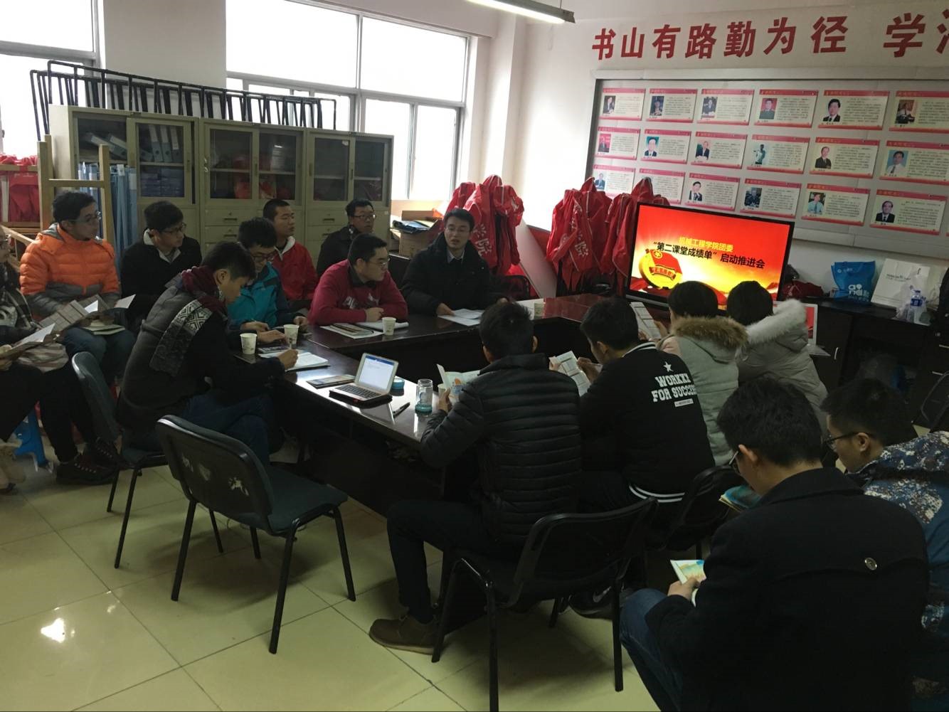 团委在翡翠湖校区综合楼211召开“第二课堂成绩单”启动推进会,各年级辅导员、学生团委副书记、各班级团支书参加了本次会议。