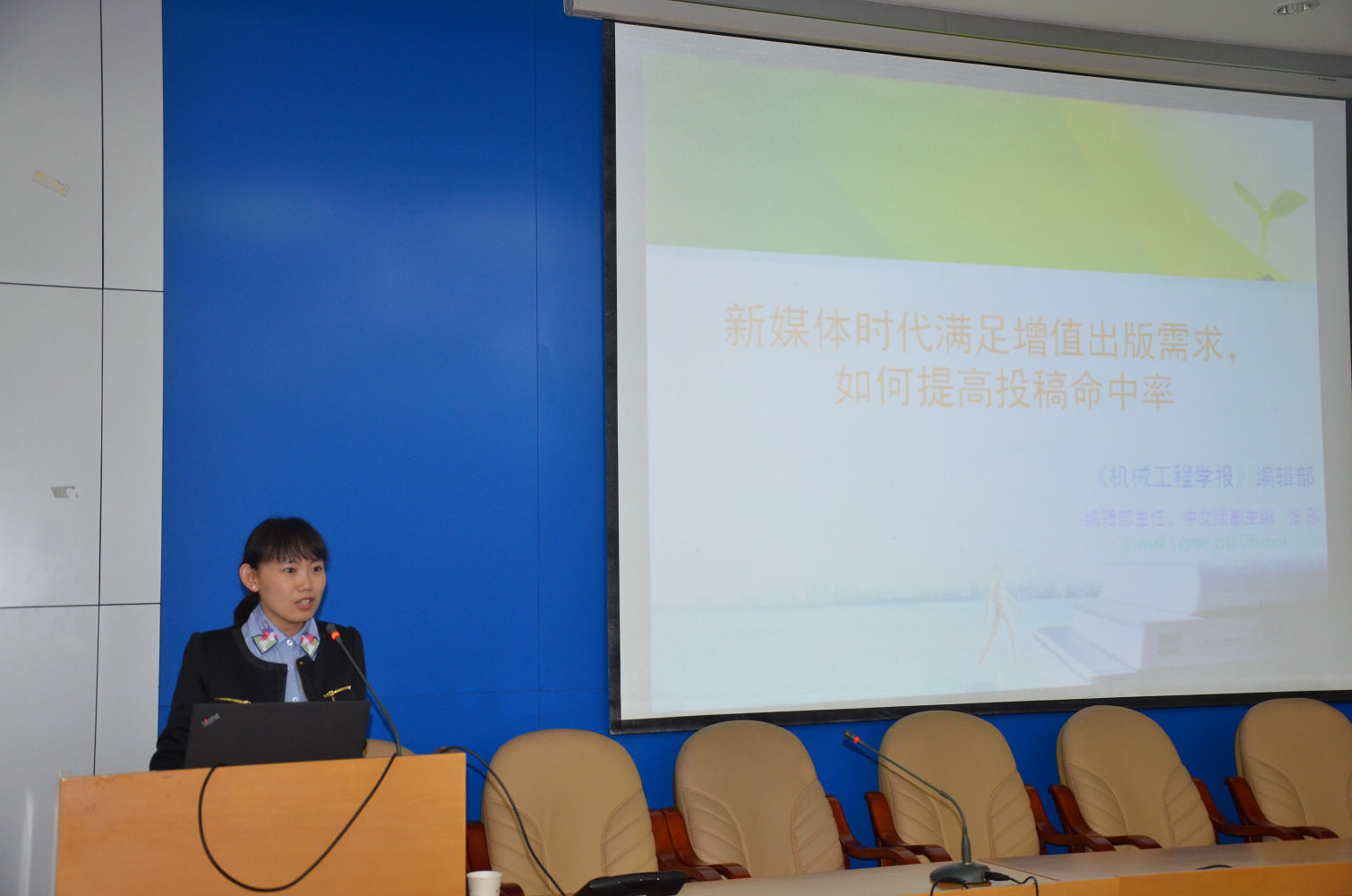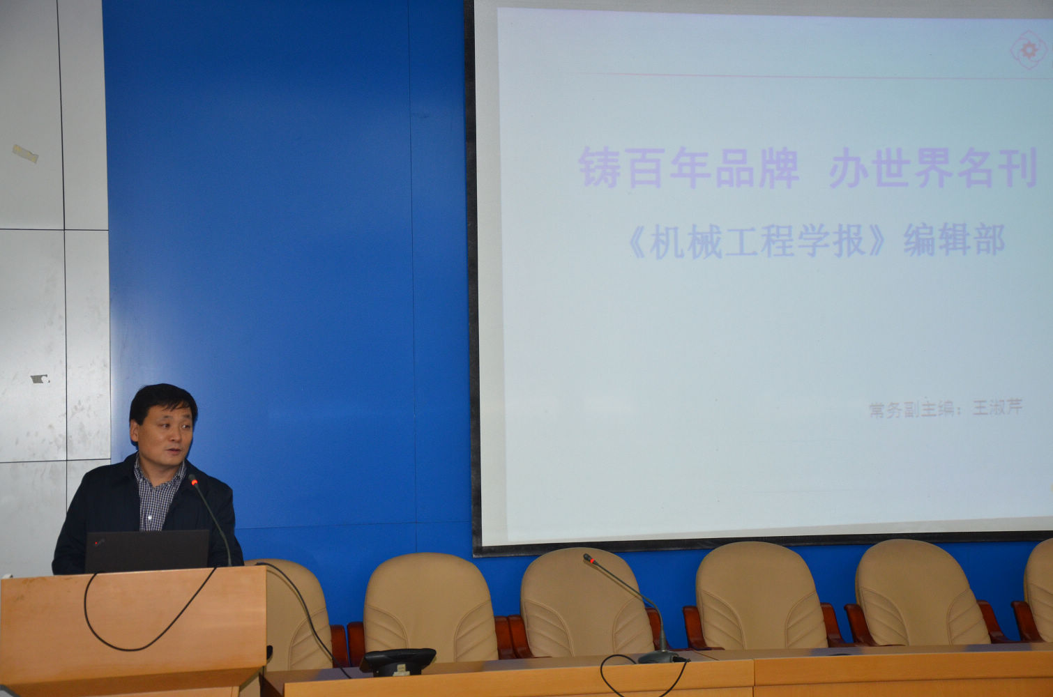 报告会上,訾斌院长首先对王淑芹主编一行的到来表示热烈的欢迎,并就近年来学院的学科方向和研究成果进行了简要介绍。接着,王淑芹主编对《机械工程学报》发展的历史及现状进行了介绍。《机械工程学报》(中、英)是由中国机械工程学会主办的学术期刊,英文版一年只出版6期,是国内该行业高水平论文收录的唯一期刊,中文版EI全收录;随后,张彤副主编讲述了学报的特色出版业务、投稿注意事项以及如何打造增值出版物,特别对学报近年来结合新媒体,推出数字版、网络版和多媒体版的情况作了详细介绍,对学报涵盖的栏目、审稿流程、出版等流程、投稿注意事项等进行了说明。会后,王淑芹主编、张彤副主编与青年教师和研究生进行了更深层次地交流,并就“端正学术科研态度”、“学报稿件审理流程及投稿技巧”以及“学术论文撰写及注意细节”等问题一一作了详细回答,并告诫学院师生要注重学术道德、严防学术不端现象。