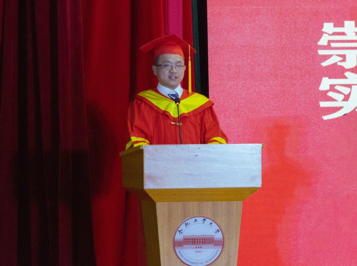 学院机械制造工程系郑红梅教授作为教师代表发言,为同学们送上真挚祝福,并勉励大家要时刻牢记“厚德、笃学、崇实、尚新”的校训,做一个品德高尚、人格健全、具有高度责任感和事业心的青年。