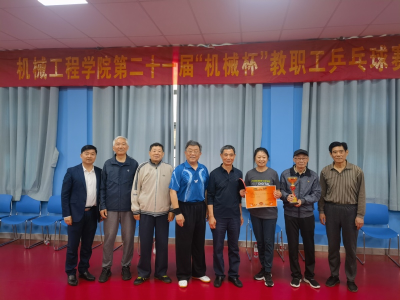 教职工积极进取的精神风貌和强烈的集体荣誉感。参赛教职工精湛的球技和出色的表现扣人心弦、精彩纷呈,博得在场观众的热烈掌声和阵阵喝彩。平时沉浸于教学科研中的各位老师抓住这一难得的机会,在挥汗如雨的比赛间隙相互问候、交流攀谈,身心得到了充分地放松。经过六轮紧张激烈的角逐,男子团体冠军由元老组摘得,机械设计1组荣获亚军,院机关队、工程图学队、摩擦所队、机电系队、机械设计2队、实验中心队分获团体第三至第八名。钟华勇老师蝉联男子单打冠军,女子单打冠军由张彦如老师获得。院党委书记张显东为获得团体前八名的参赛团队及个人颁奖。