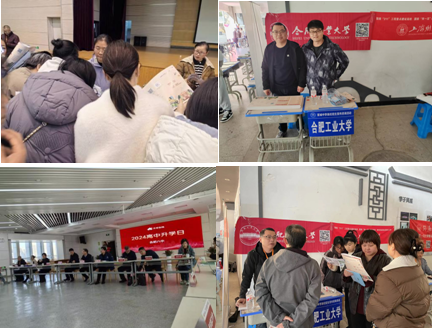 合肥八中校方组织了由三十多所高校招生工作人员参加的招生见面会,宣城中学校方组织了由四十多所高校招生工作人员参加的招生见面会,两所学校的校领导致欢迎辞,并介绍了学校的的管理体制、师资队伍、校园文化、人才培养等情况。此后,在招生咨询与宣传工作中,宣传组成员向前来垂询的各位学生家长详细介绍了我校的发展历史、办学特色、专业设置、学科优势、校园文化等相关信息,并对大家共同关心的招生政策、近三年招生情况、转专业政策、就业情况、保研政策等方面的情况进行了详细介绍。学生和家长对我校的招生工作表现出极高的热情,对我校表现出浓厚的兴趣。有的学生对我校专业情况和录取分数及位次做了详细记录;有的学生详细询问了心仪专业的课程体系和发展前景…现场三百份宣传册和纪念品很快领取完毕,并有不少考生家长加入了“2025合工大招生微信咨询群”。所有这些,无不激励着我院招生宣传队伍更加努力!
