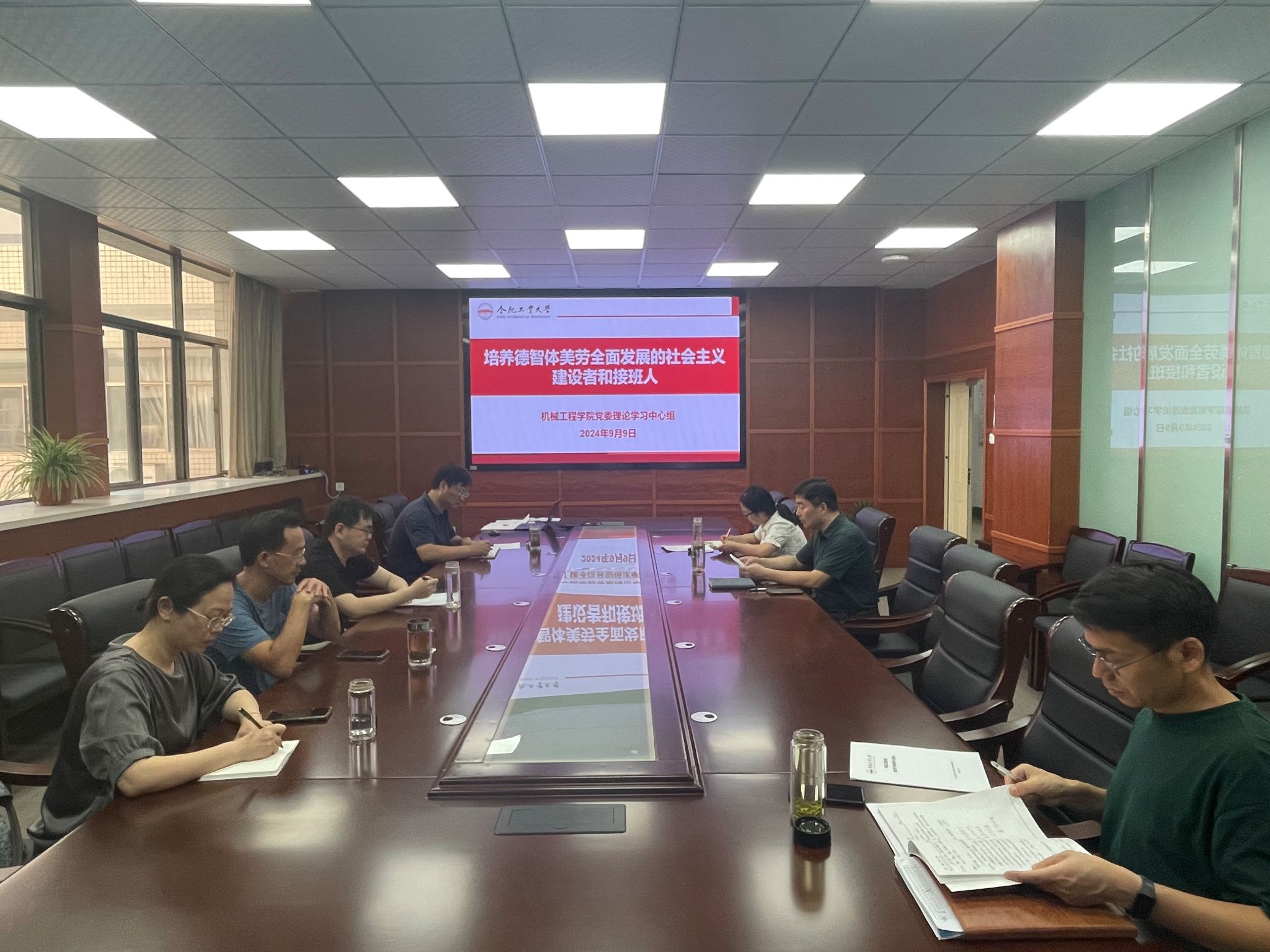 张显东书记领学了《培养德智体美劳全面发展的社会主义建设者和接班人》、习近平总书记关于巩固深化党纪学习教育成果作出的重要指示精神;蔡伟伟副书记领学了习近平总书记在中央全面深化改革委员会第六次会议上的重要讲话精神、习近平总书记在纪念邓小平同志诞辰120周年座谈会上的重要讲话精神、习近平总书记勉励湖北十堰丹江口库区的环保志愿者回信精神;黄海鸿领学了《中共中央国务院关于弘扬教育家精神 加强新时代高素质专业化教师队伍建设的意见》。