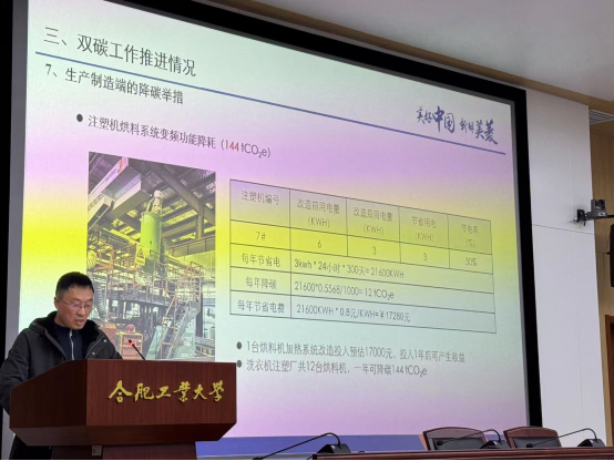 中国科学院生态环境中心杨建新研究员针对生命周期评价面临的数据获取困难、系统边界定义模糊及不确定性分析等挑战,分享了其团队在数据质量、模型复杂性和跨学科应用等方面取得的进展。中国商飞上海飞机设计研究院王政主任工程师介绍了民用飞机在退役后的拆解流程和技术,最大化退役飞机零部件和材料的再利用率,强调提高再利用率对于航空业实现可持续发展的重要性。中国科学技术大学李文志教授展示了其团队通过开发高效的双金属催化剂,提高了木质素解聚的效率和选择性,为生物炼制行业提供了新的技术路径。奇瑞新能源股份有限公司朱彬高级工程师分享了全球汽车行业碳排放现状与面临挑战,阐述奇瑞新能源汽车在轻量化技术以及复合材料研发应用的技术创新路径。长虹美菱股份有限公司魏邦福教授级高工指出长虹美菱在双碳工作中积极推进能源结构优化和能效提升,通过技术创新和管理改进实现节能减排效果,公司还致力于构建绿色制造体系,探索碳中和路径,以实际行动支持国家的“双碳”目标。4虎