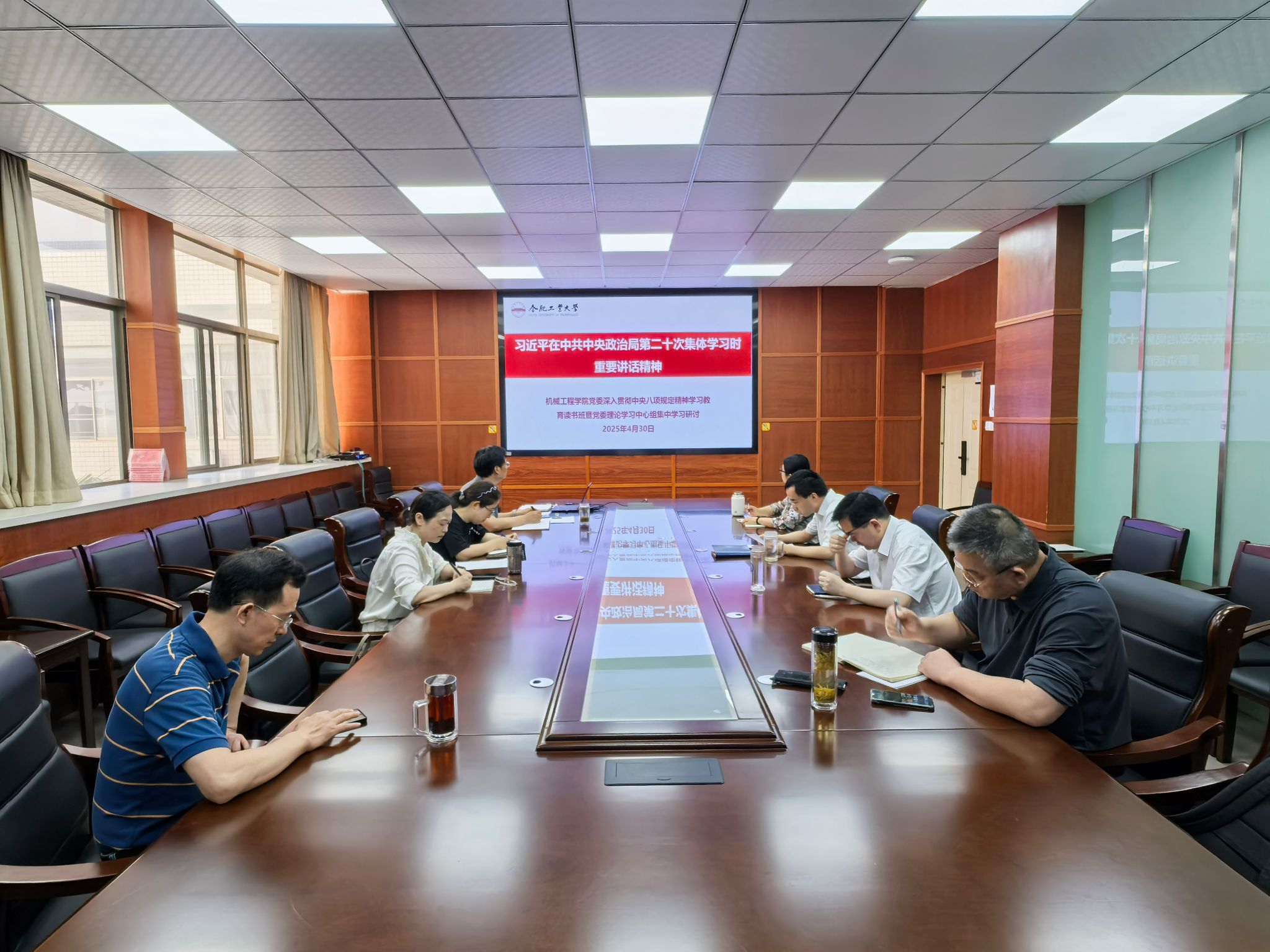深入贯彻中央八项规定精神学习教育读书班在格物楼308召开会议开展集中学习,学院党委书记祖磊主持会议,党委理论学习中心组其他成员参加学习。