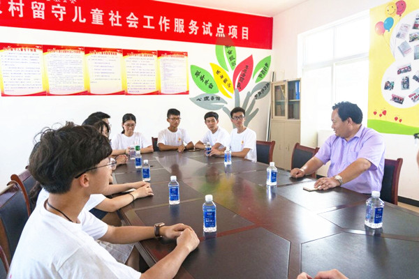 7月19日下午,安徽省红十字协会党组成员、秘书长曹芦松,宿州市红十字会专职副会长卓海波,合工大扶贫办副主任、灵璧县副县长李宏国一行来到灵璧县虞姬乡陈埝小学看望我院紫笛社“益行计划”志愿服务队志愿者。