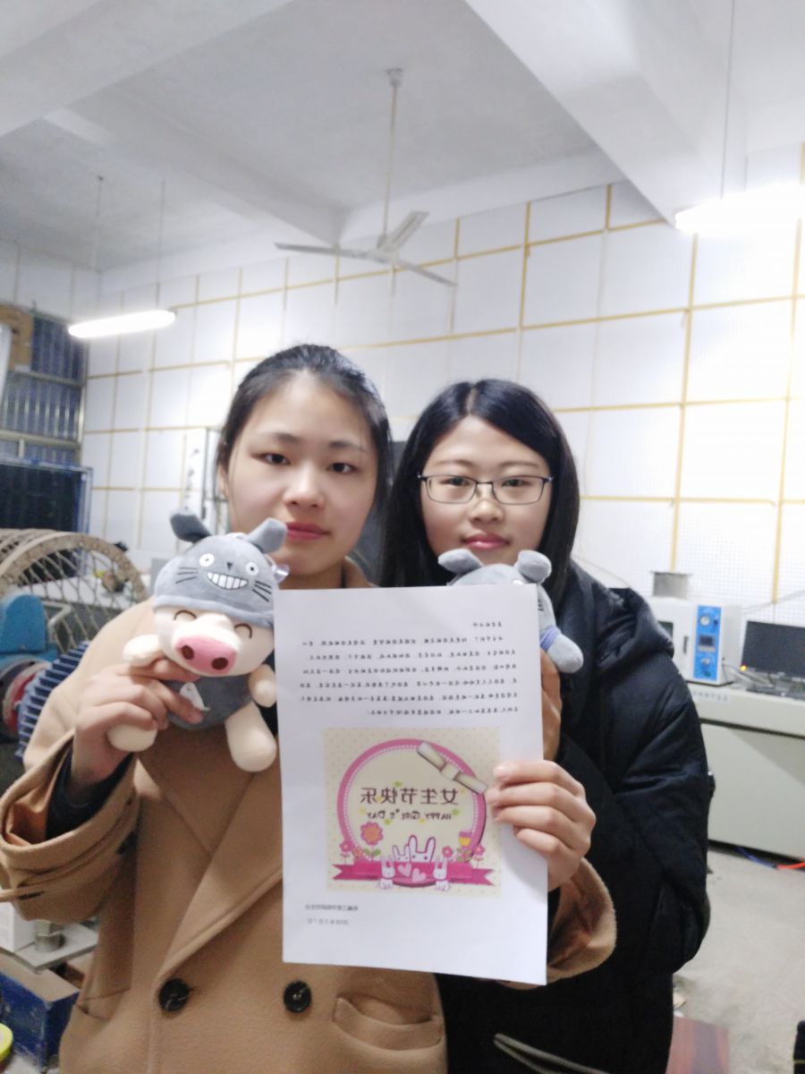当天上午,我院研究生会的男生们前去城隍庙选购礼物,他们在礼品店精挑细选了许多样式不一、乖巧可爱的玩偶。随后在水果店用多种甜美的水果装成了精美的水果拼盘,完成了此次活动的前期准备。晚上,我院男生自告奋勇,根据前期在机械研会微信众号留言的女神名单,开始了礼物派送。一份水果拼盘,一个精致的玩偶,一份甜言蜜语,由男生们送到女生手上,这些小惊喜带来的不仅是一份关怀,也有一份感动。
