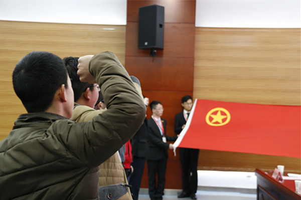 伴随着国歌声,10名新团员的入团仪式正式开始。陈竹老师为新发展团员佩戴团徽并颁发团员证,全体新团员面向团旗宣誓、全体团干重温了入团誓词。陈竹书记代表上一级团委表达了祝贺和祝福,他说作为一名共青团员,要强“三性”亮身份,努力提升政治素质;要认真学习团务知识,做好团的工作,履行团的职责;要掌握又红又专的理论知识,增强青年团员明辨是非的能力,发挥青年团员的先锋模范带头作用。