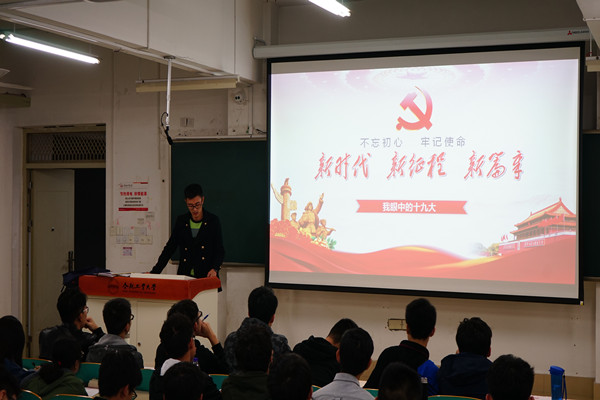辅导中,2017级辅导员张帆和刘洋深入各班级,带领学生原原本本、原汁原味学习好党的十九大精神,强化使命担当,振奋精神状态,积极投身建设实践。同时结合党的十八大以来经济社会取得的巨大成就和历史性变革,着重从“三个意味着”和“五个是”解读“新时代”的科学内涵和时代昭示,进而引导学生把握“新要求”“新使命”。接着从“八个明确”和新时代坚持和发展中国特色社会主义的十四条基本方略等角度,全面阐释习近平新时代中国特色社会主义思想的丰富内涵。引导学生坚持用这一马克思主义中国化最新成果作为思想武器和行动指南,深刻认识这一重大思想的历史地位、丰富内涵、精神实质和实践要求,切实增强“四个自信”。结合决胜全面建成小康社会、开启全面建设社会主义现代化国家新征程的“两步走”战略,引导学生树立强烈的新时代主人翁意识和责任感,以时不我待、只争朝夕的精神投身学习和实践,不断提高社会责任感、创新精神和实践能力。