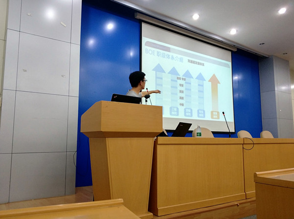 在格物楼214举行“展现自我 放飞梦想”应聘技巧交流会,来自华东地区知名企业的招聘经理与现场约150名2014级学生就职业规划问题进行了互动和交流,并讲授了简历制作和面试等方面的技巧。