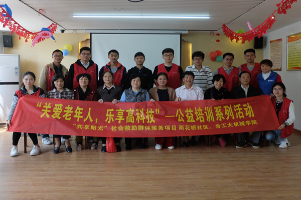 研究生会与摩擦学研究所党支部志愿者们前往合肥市雨花桥社区开展“关爱老年人 乐享高科技”主题敬老志愿服务活动。
