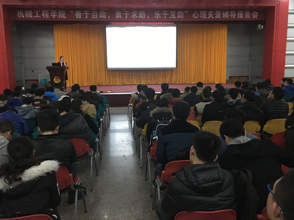 在屯溪路校区东风报告厅举办主题为“善于自助,勇于求助,乐于互助”的大学生心理关爱辅导报告会。报告由学工部心理健康教育与咨询中心李艳老师主讲,学院辅导员、各班班长、寝室长及党支部书记300余人聆听了此次报告会。