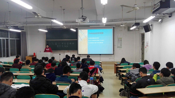 团总支在翡翠湖校区五教101举办了十八届六中全会精神学习交流会。本次交流会由机械学院团委学生副书记徐力群担任主讲人,该院第4期推优团员及第55、56期入党积极分子参加了本次学习交流会。